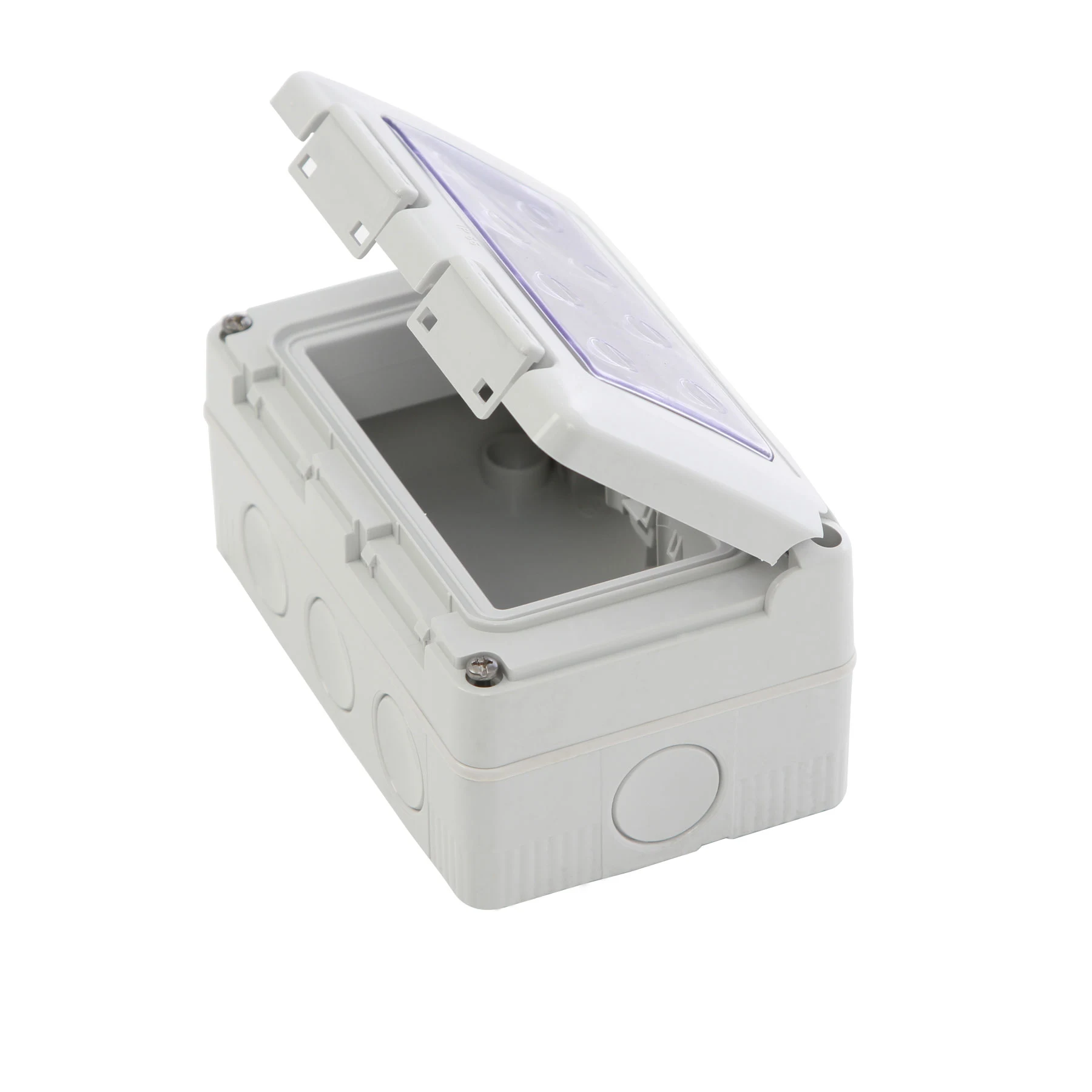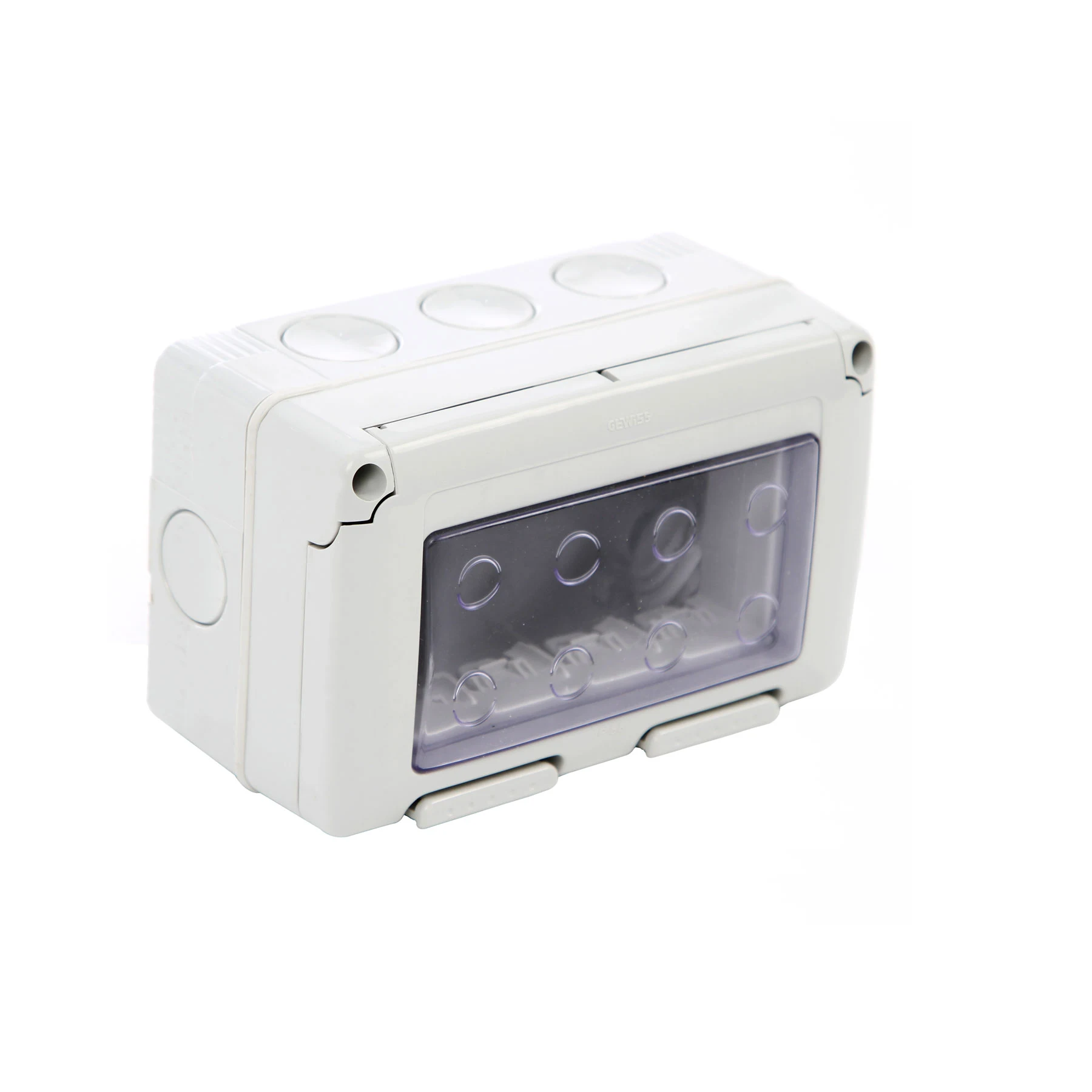 Realizata din material plastic de culoare gri, are o capacitate de 4 module si un grad de protectie la factorii de mediu (apa si praf) de IP55, putand fi folosit la exteriorul locuintei.