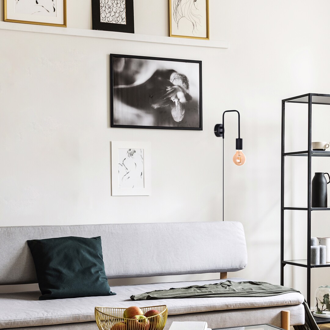 Aplica Manzur 71022, in stil industrial, este recomandata pentru living sau dormitor modern, fiind ideala pentru cei care prefera un design minimalist. Realizata din metal in finisaj negru, aceasta aduce un plus de caracter incaperii prin forma sa simpla si eleganta.