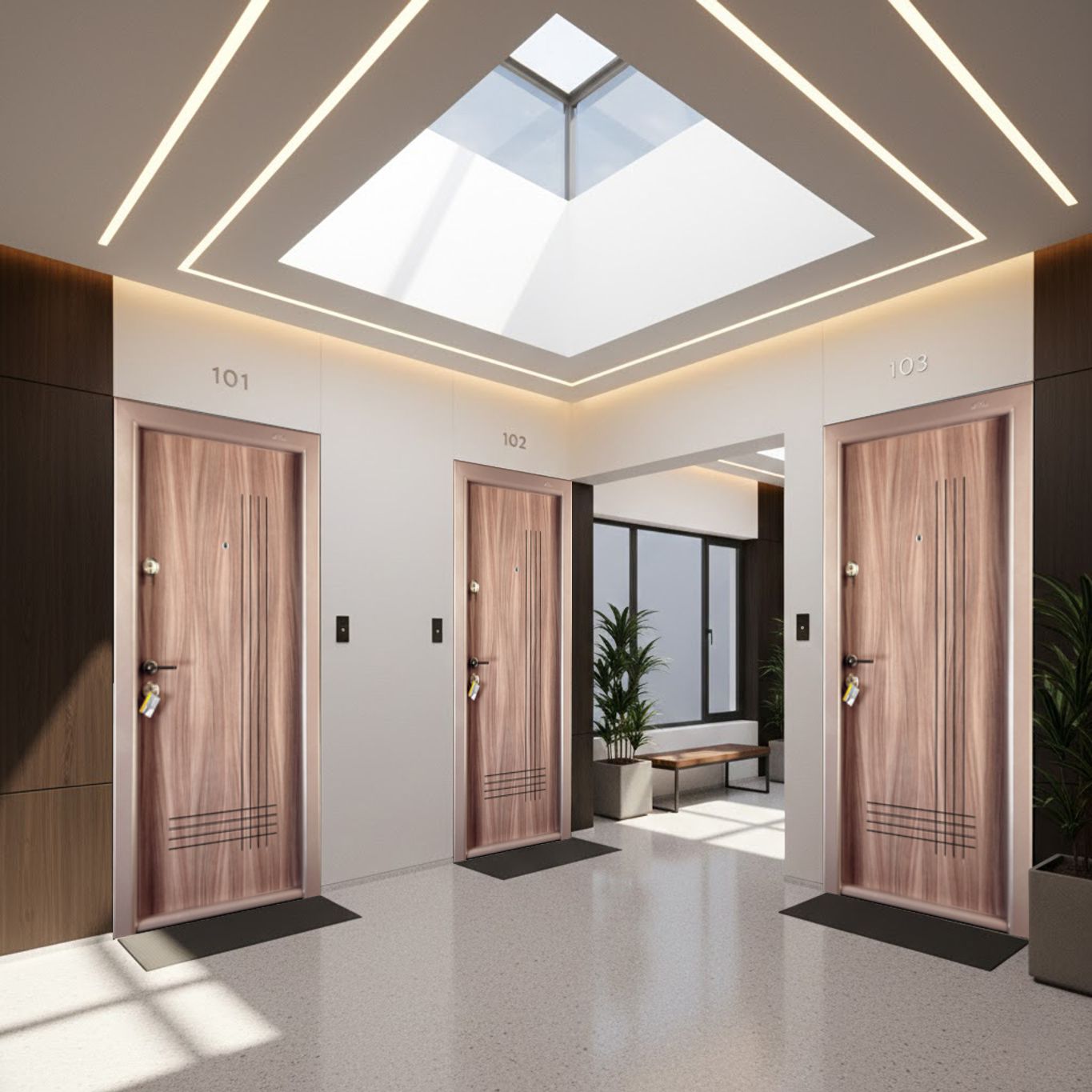 - Structura interioara: structura metalica galvanizata ranforsata + foaie de tabla, imbracata cu 2 placi de MDF