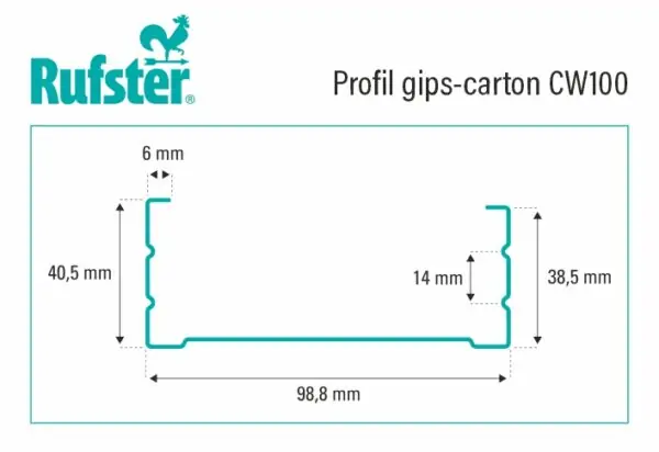 Profil gips carton Rufster din tabla zincata CW100 3 m 0.6 mm grosime