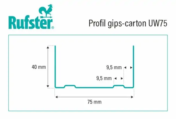 Profil gips carton Rufster din tabla zincata UW75 4 m 0.6 mm grosime