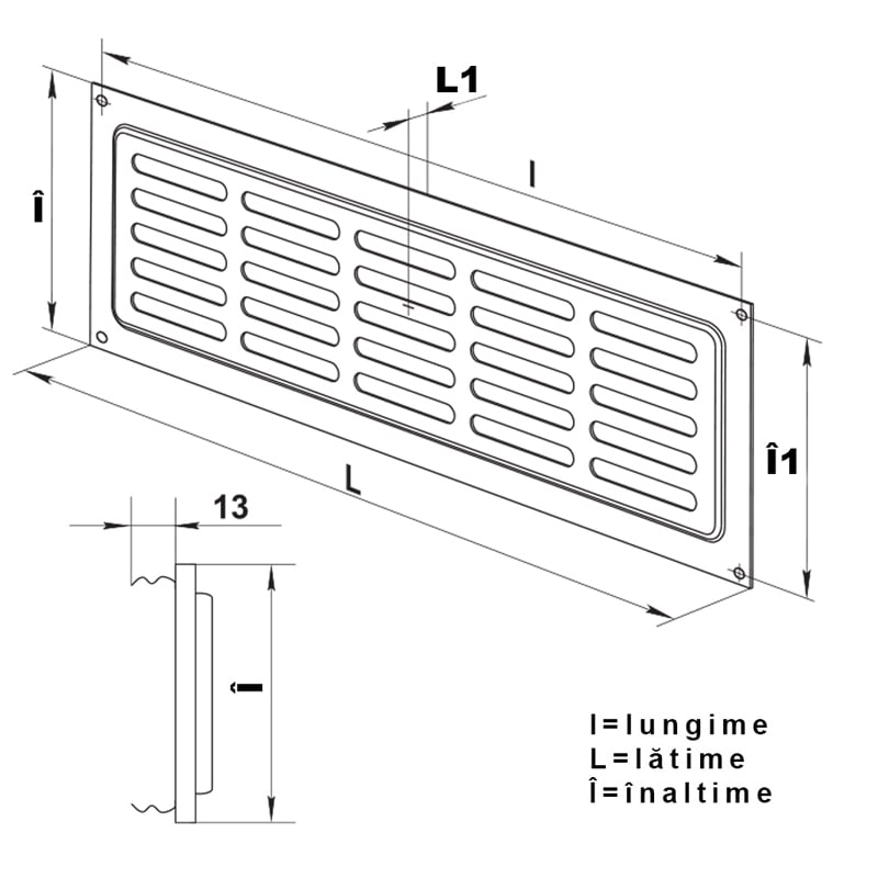 Grila de ventilatie 250X80 mm, metal