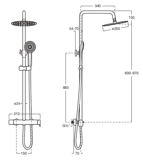 Dotată cu un cap de duș fix și unul mobil, permite o experiență de duș versatilă și confortabilă.
