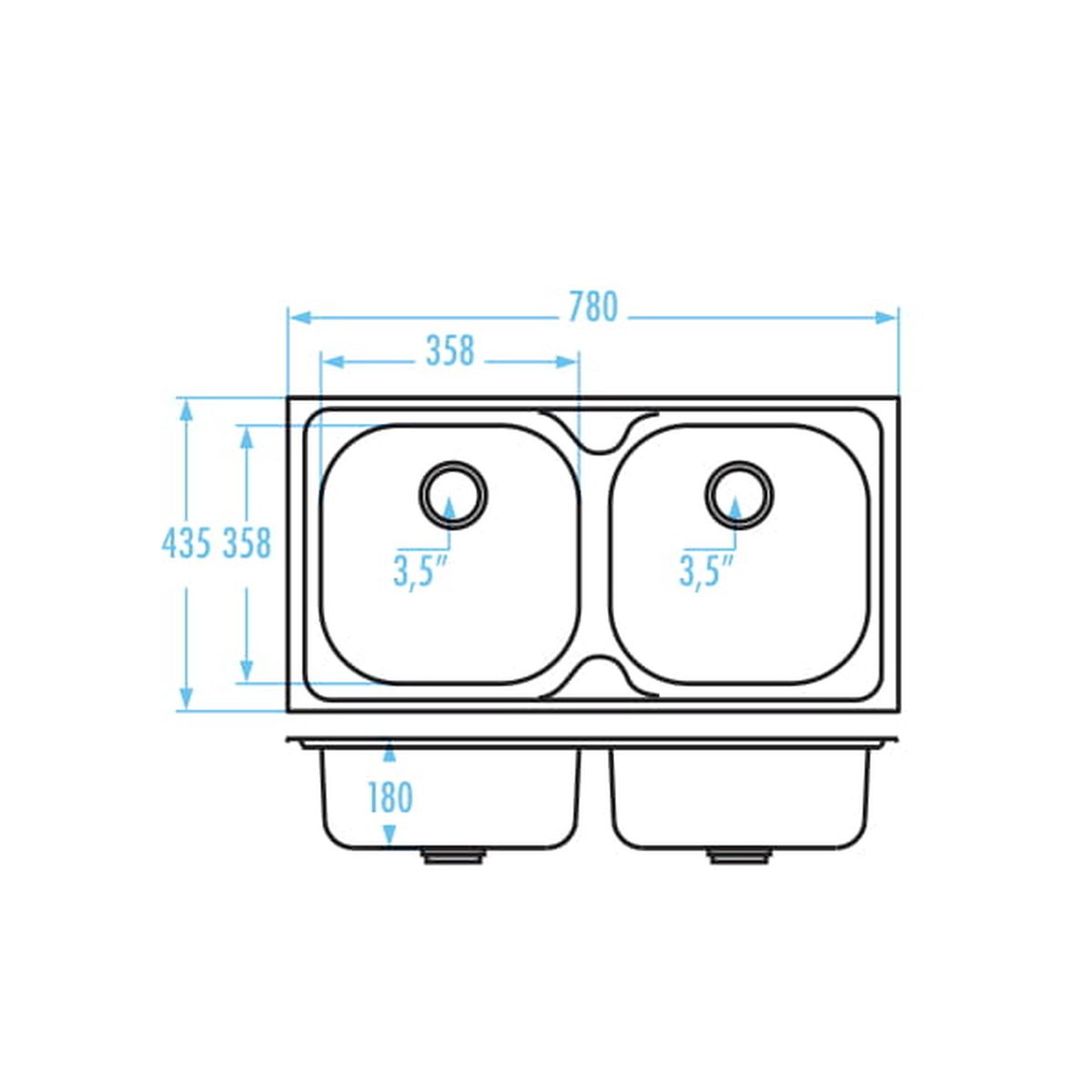 Chiuveta de bucatarie standard 2C SKS 320T, inox antichizat, dimensiuni 78 x 43 cm