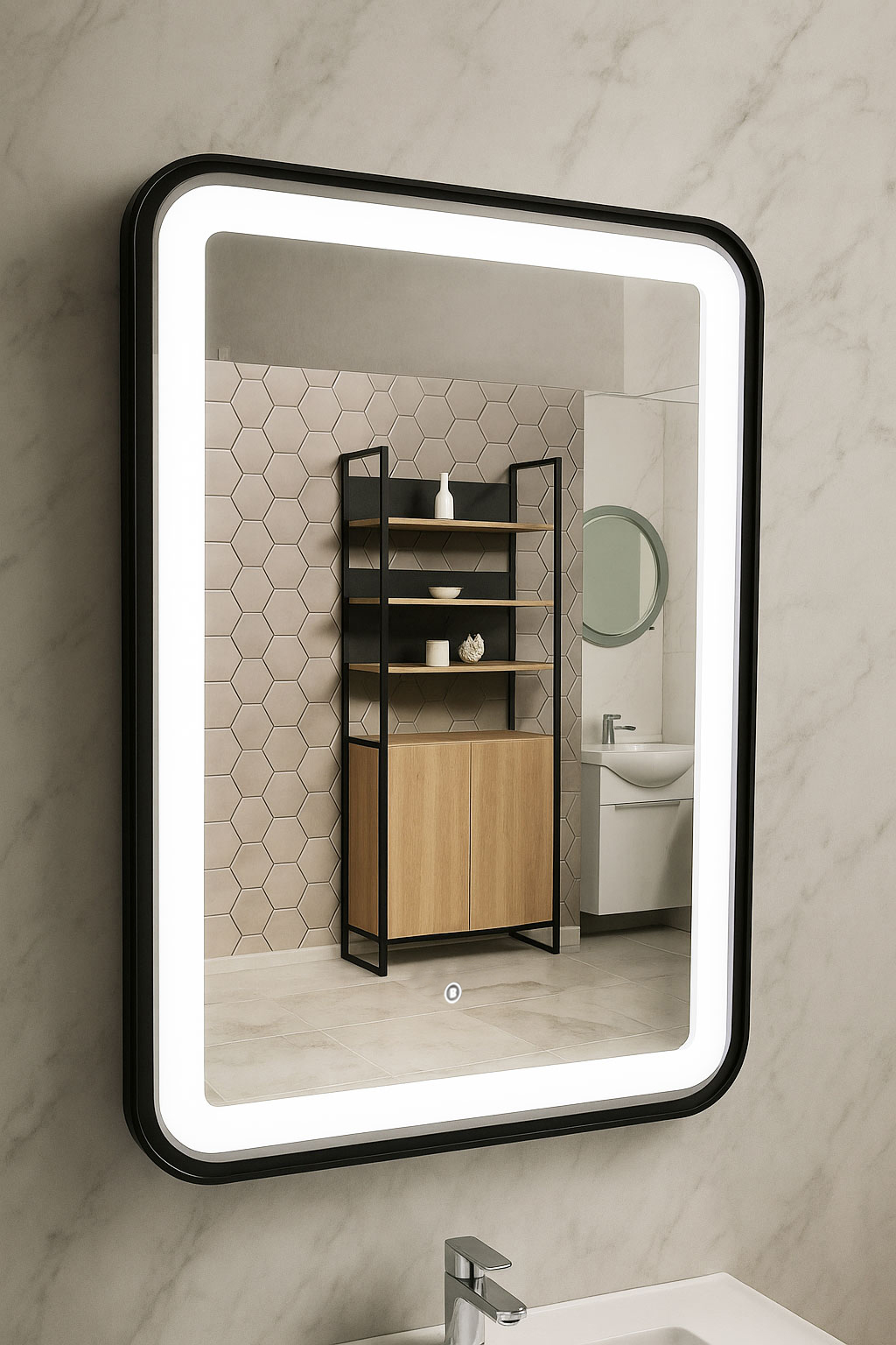 Oglinda MD3, 60x80 cm, iluminare LED, functie touch, rama neagra