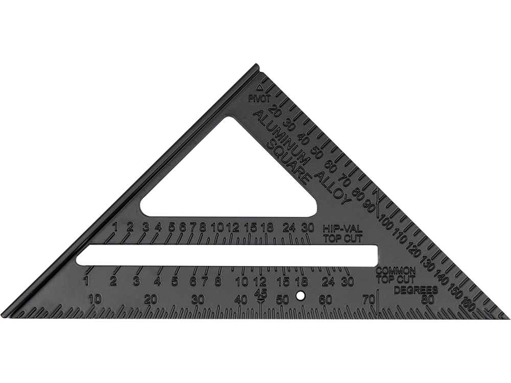 - pe margini diviziuni milimetrice și inci marcate permanent pentru măsurători de dulgherie și acoperiș