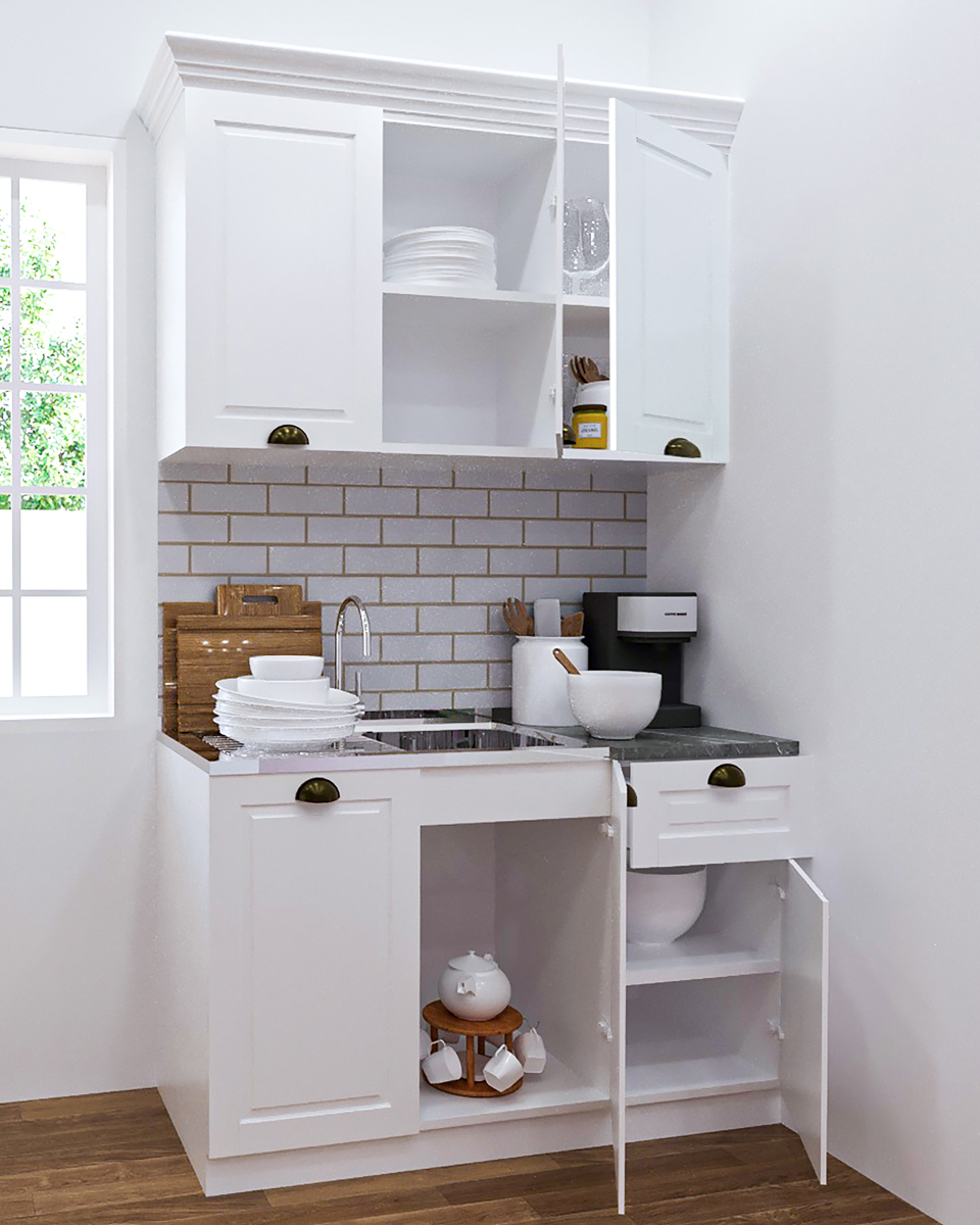 - Kit bucatarie MDF Square, 120 cm, 1 sertar, alb antichizat