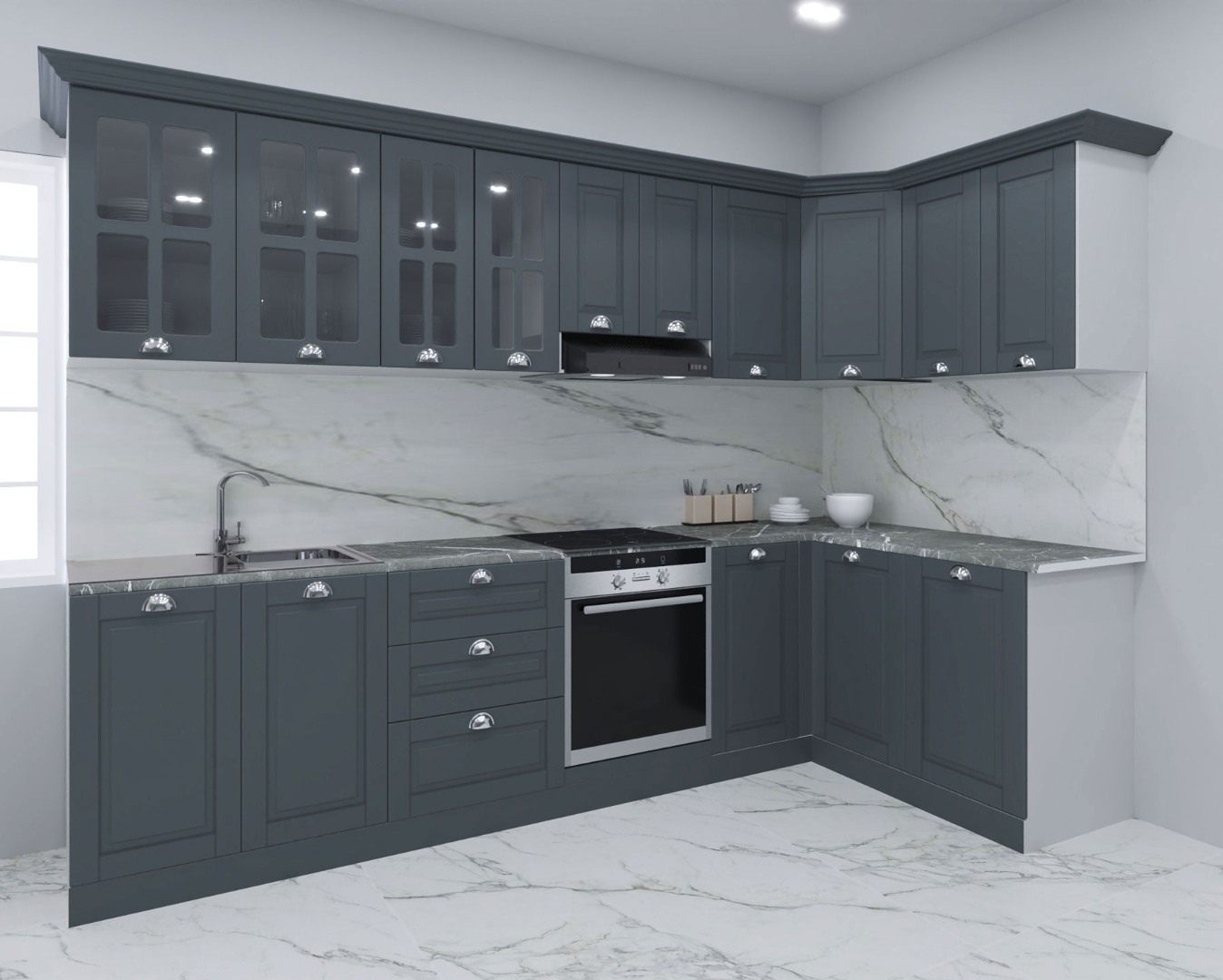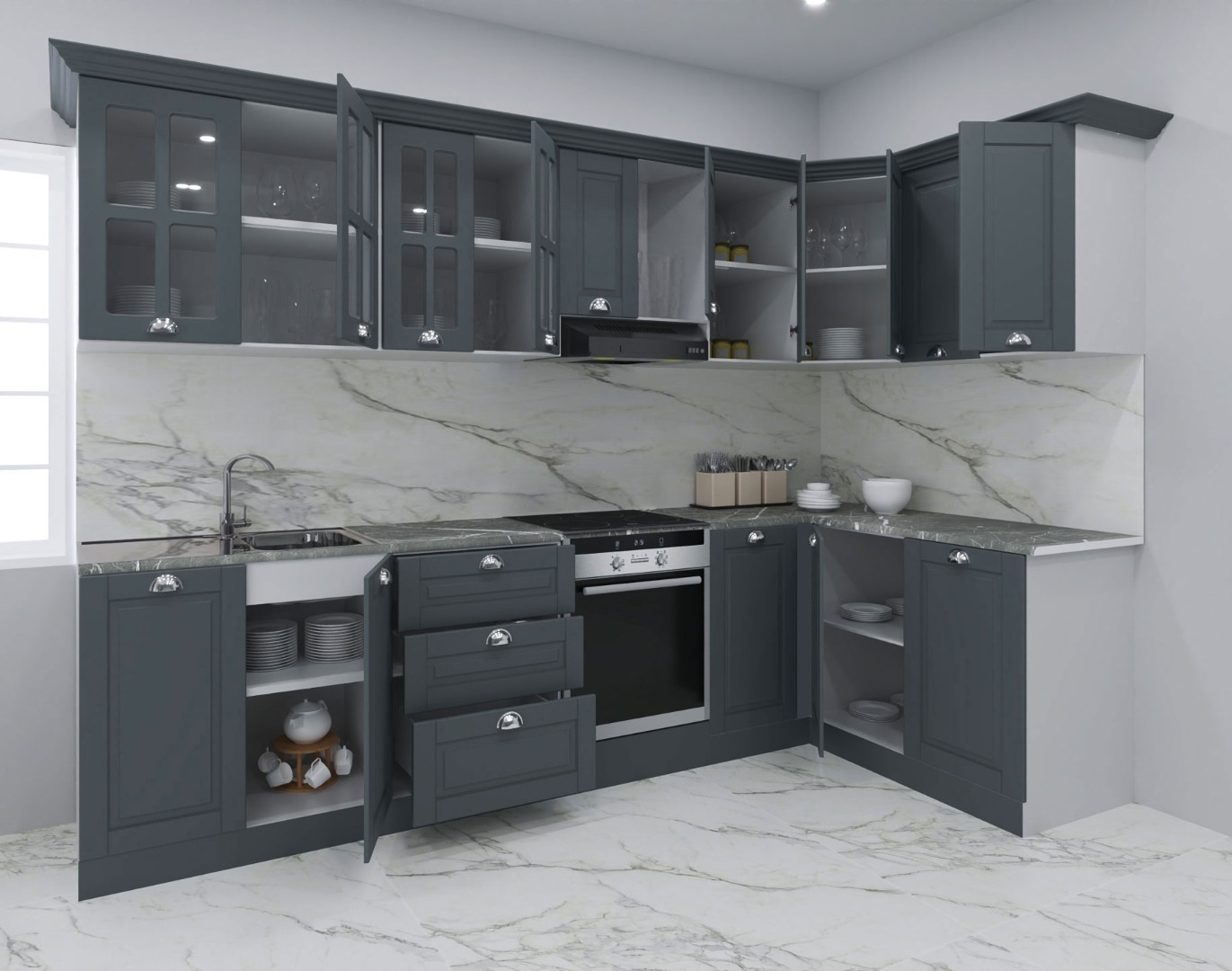- Set bucatarie colt MDF Square, 300x140 cm, antracit