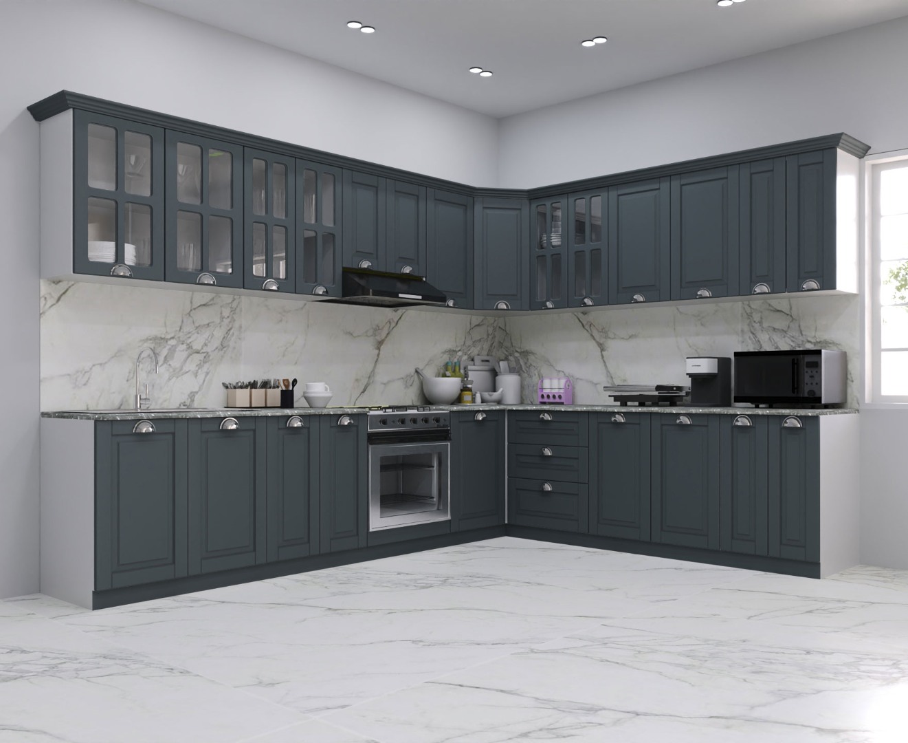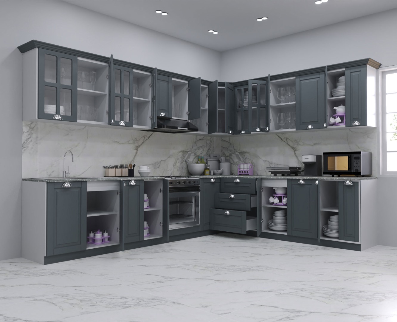 - Set bucatarie colt MDF Square, 300x250 cm, antracit