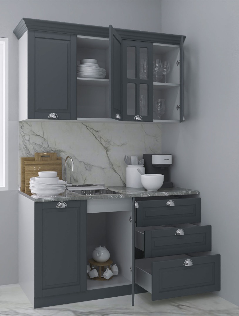 Pareri Set bucatarie MDF Square 01, 140 cm, antracit