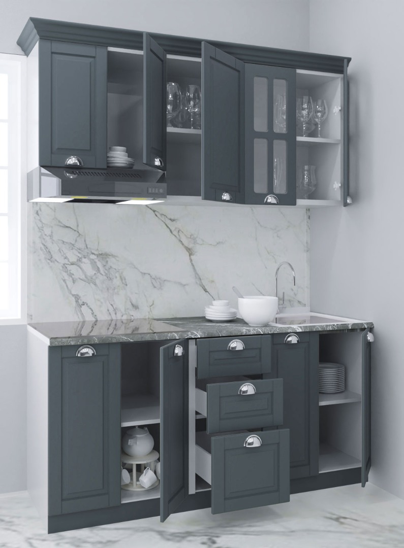 Set bucatarie MDF Square 01, 160 cm, antracit