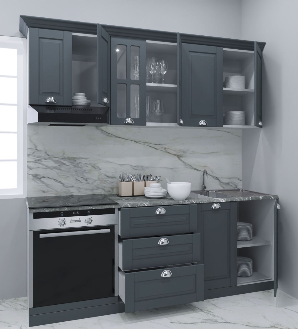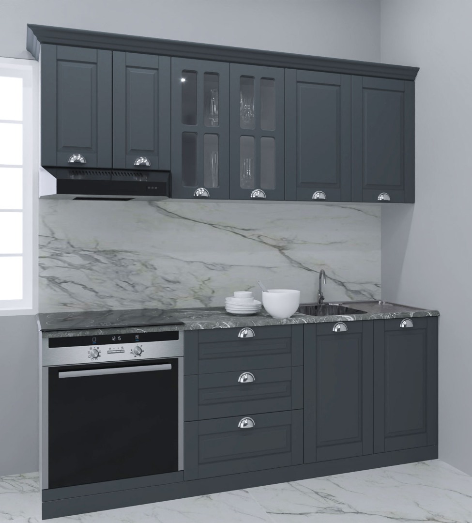 Pareri Set bucatarie MDF Square 01, 200 cm, antracit