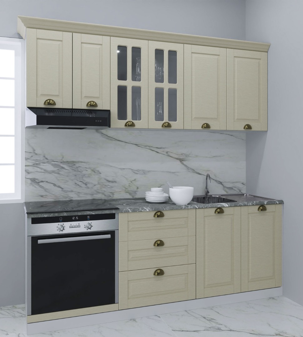 Pareri Set bucatarie MDF Square 01, 200 cm, sertare, fag rustic