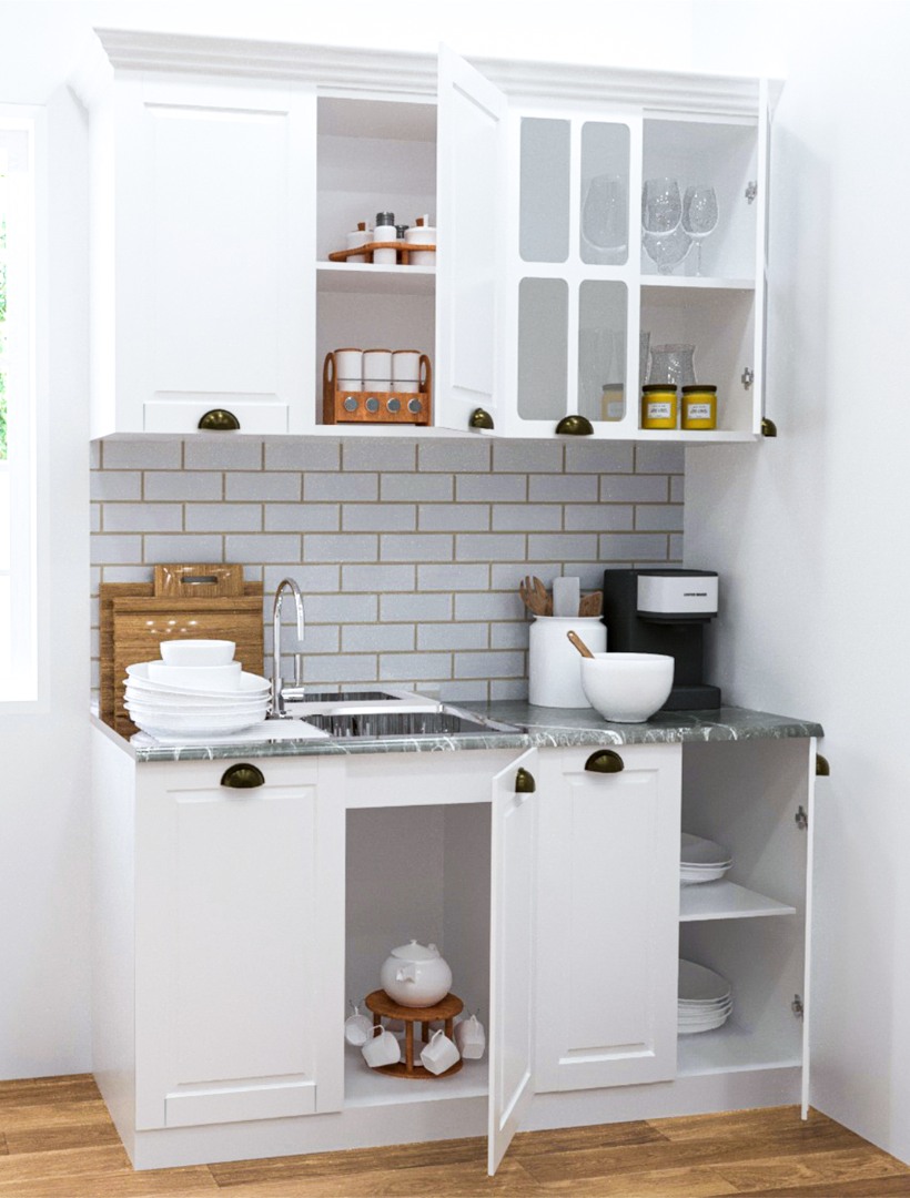 Set bucatarie MDF Square, 140 cm, alb rustic