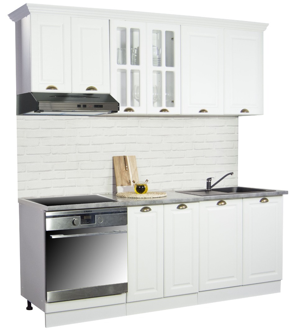Set bucatarie MDF Square, 200 cm, alb rustic