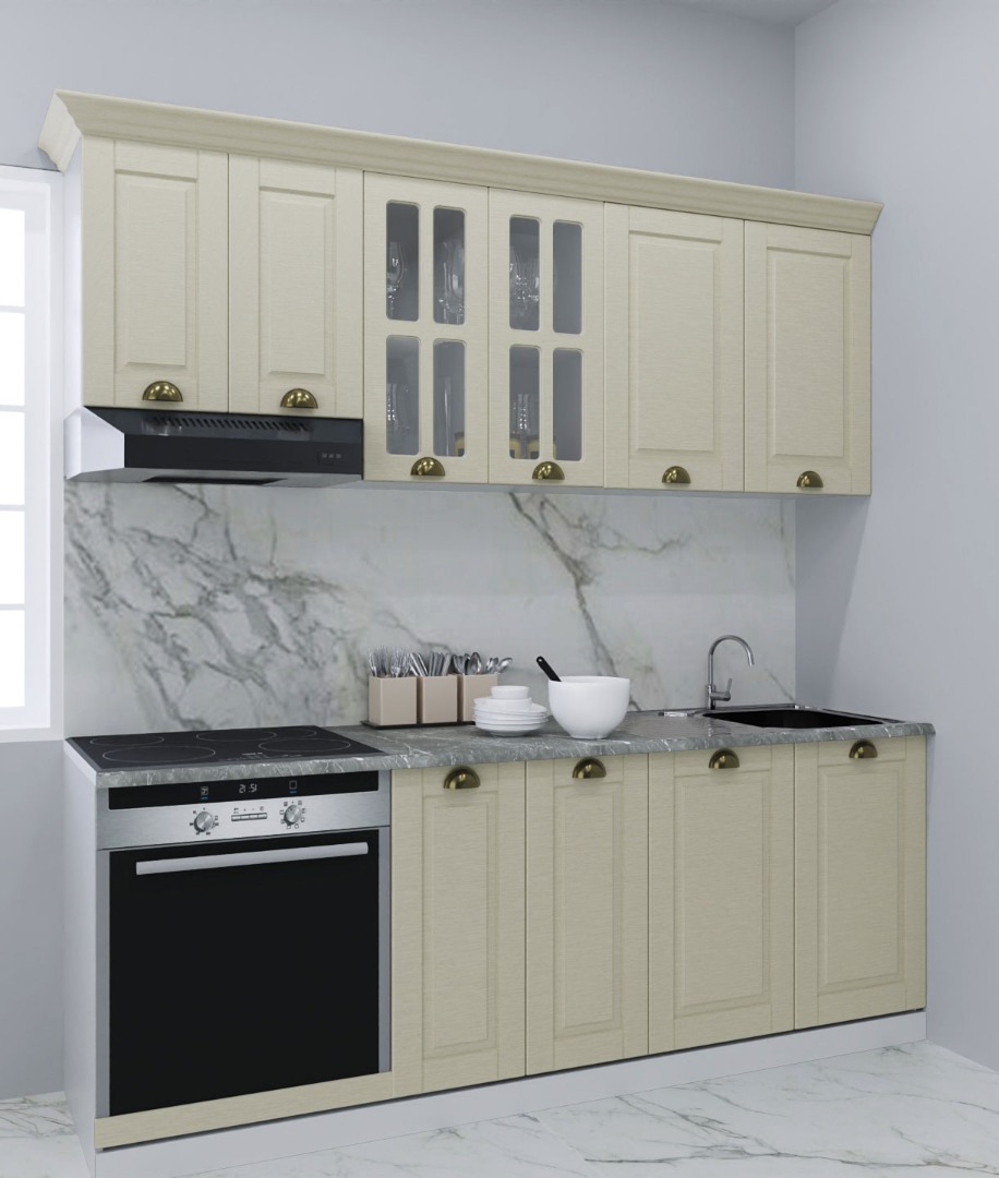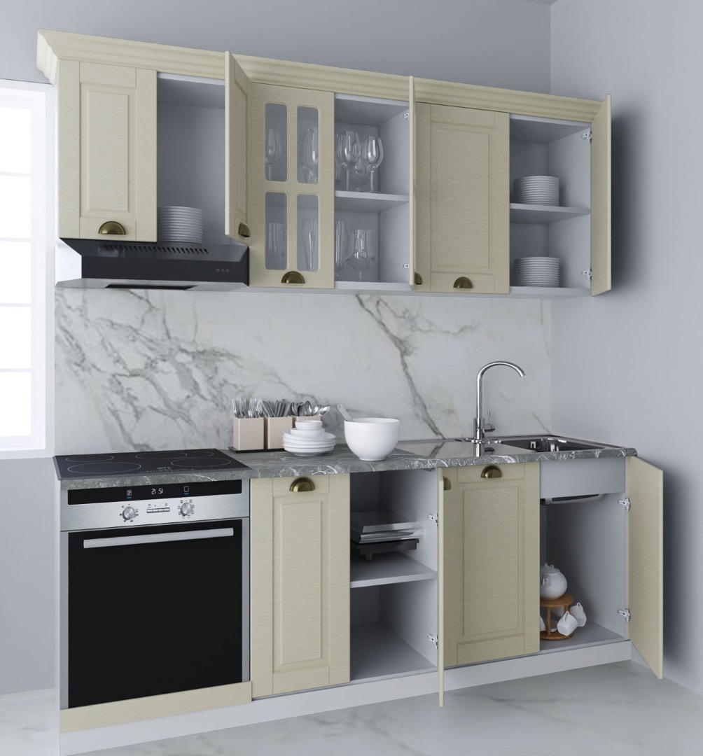 Pareri Set bucatarie MDF Square, 200 cm, fag rustic