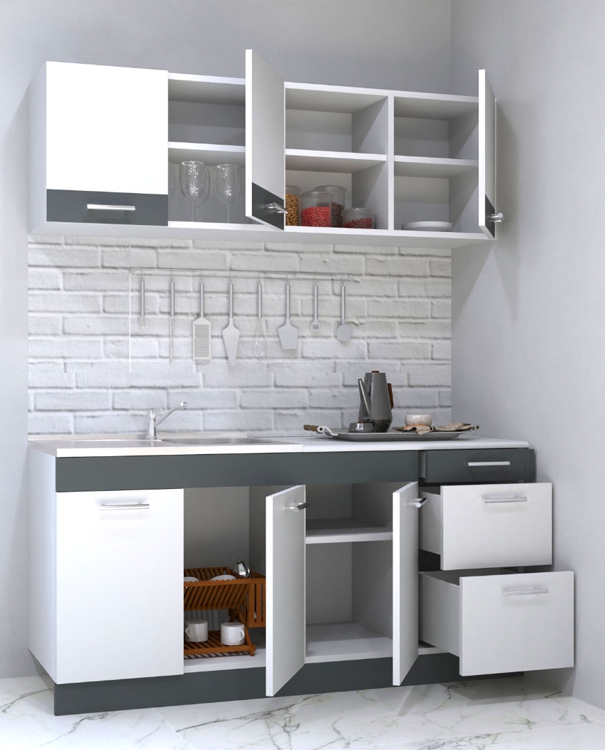 Pareri Set bucatarie PAL Sarona 01, 160 cm, alb/antracit
